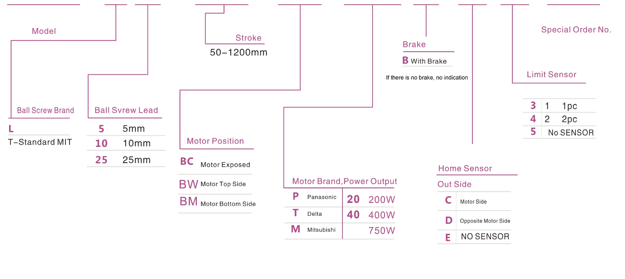 | Kullanım Alanı | Sürüş Modu | Model Özellikleri | Motor Çıkışı (w) | Genişlik (mm) | Tekrarlanabilirlik (mm) | Bilyalı Vida Özellikleri | Maksimum Yük Kapasitesi (kg) | Maksimum hız (mm/s) *1 | ||