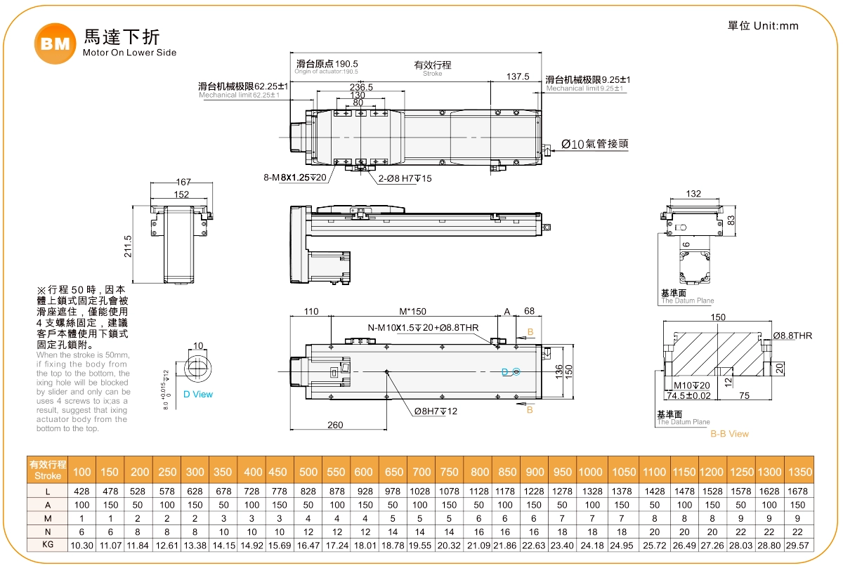 Yüksek Rijitlikli Lineer Kılavuz (mm)Bilyalı Vidalı Aktüatör
