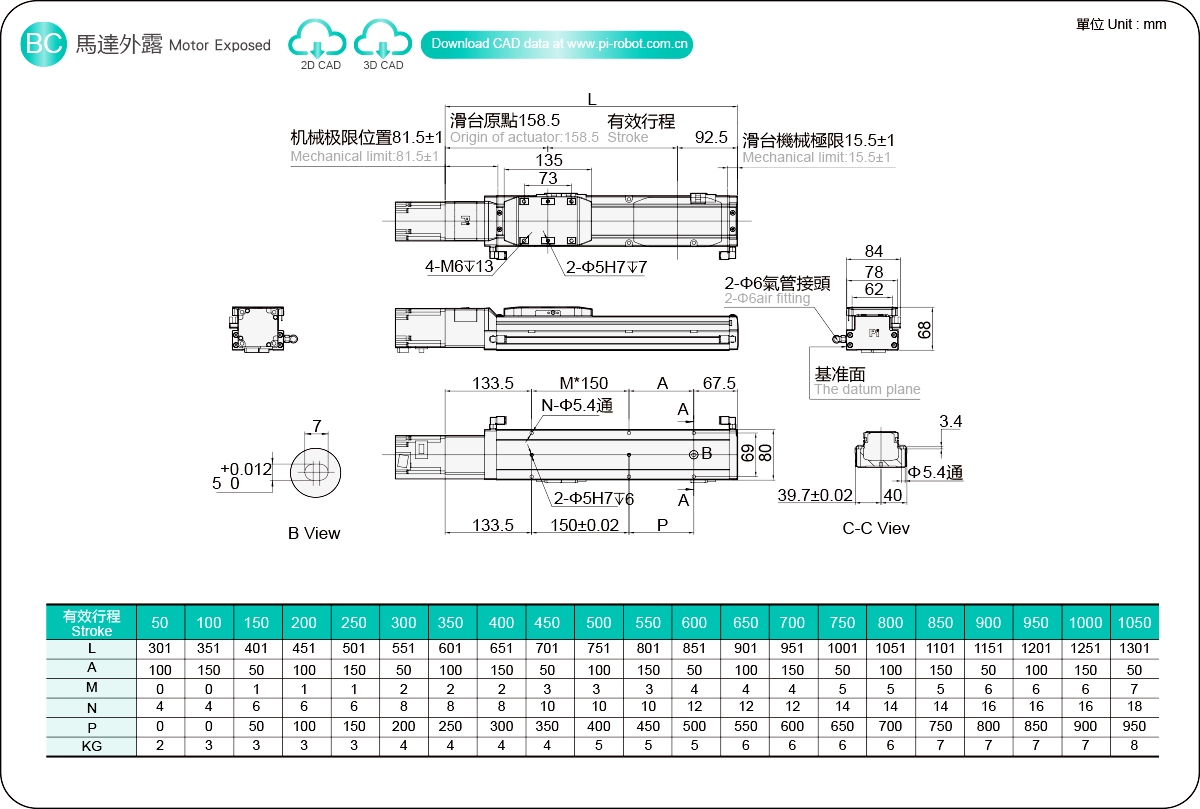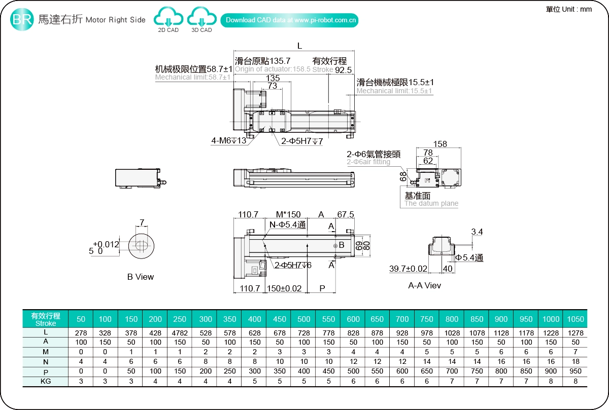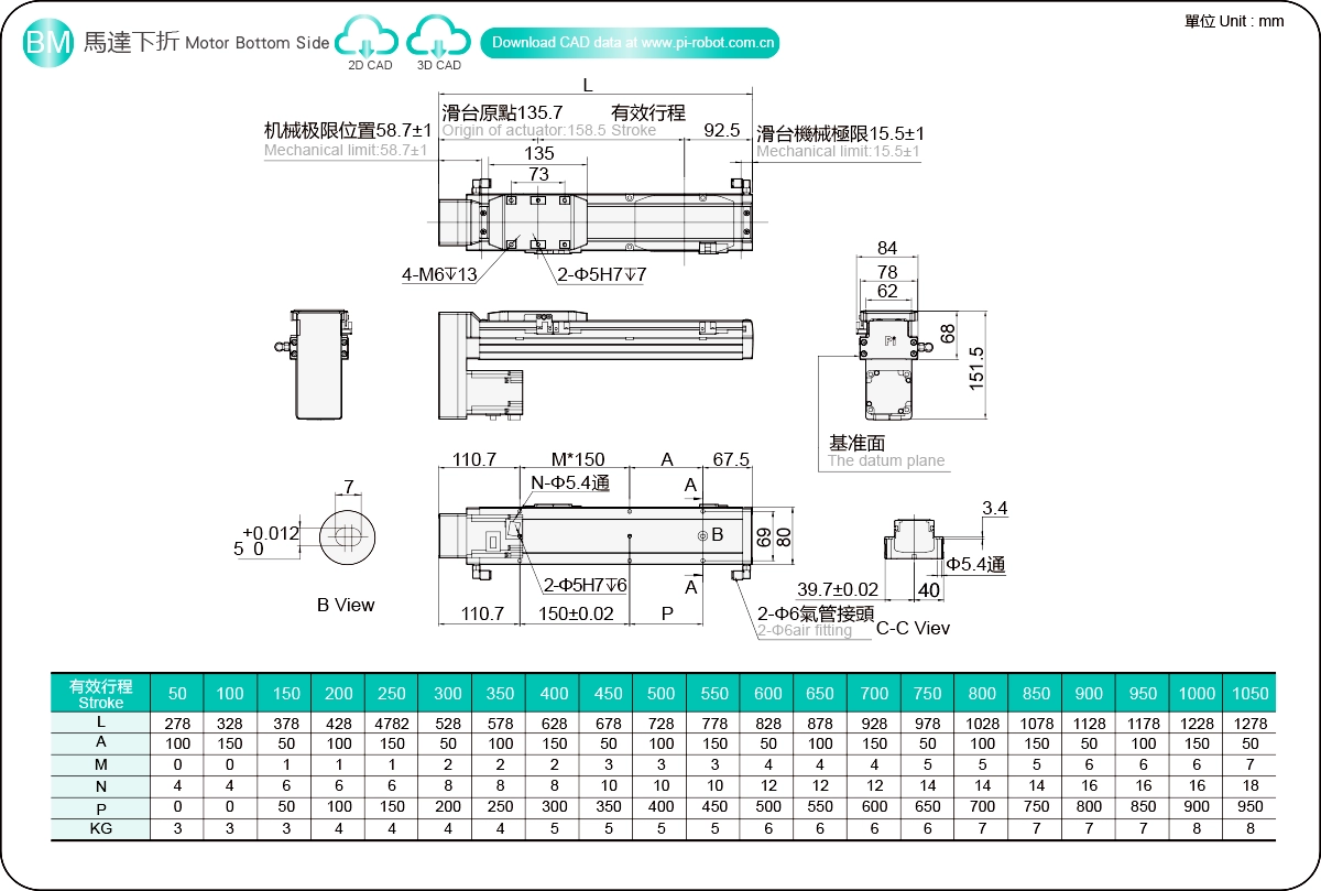 Hareket Aralığı: 50-1050 mm