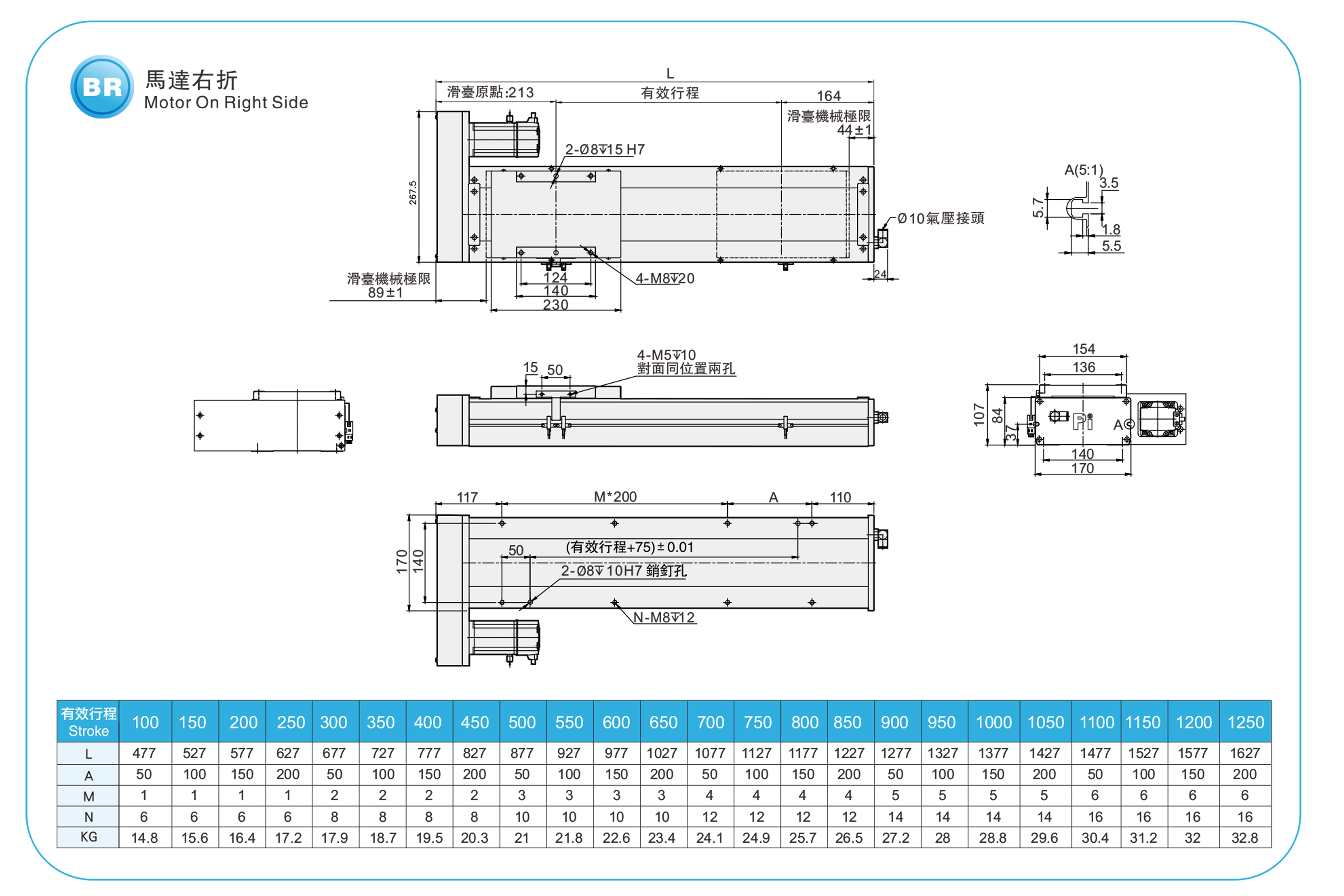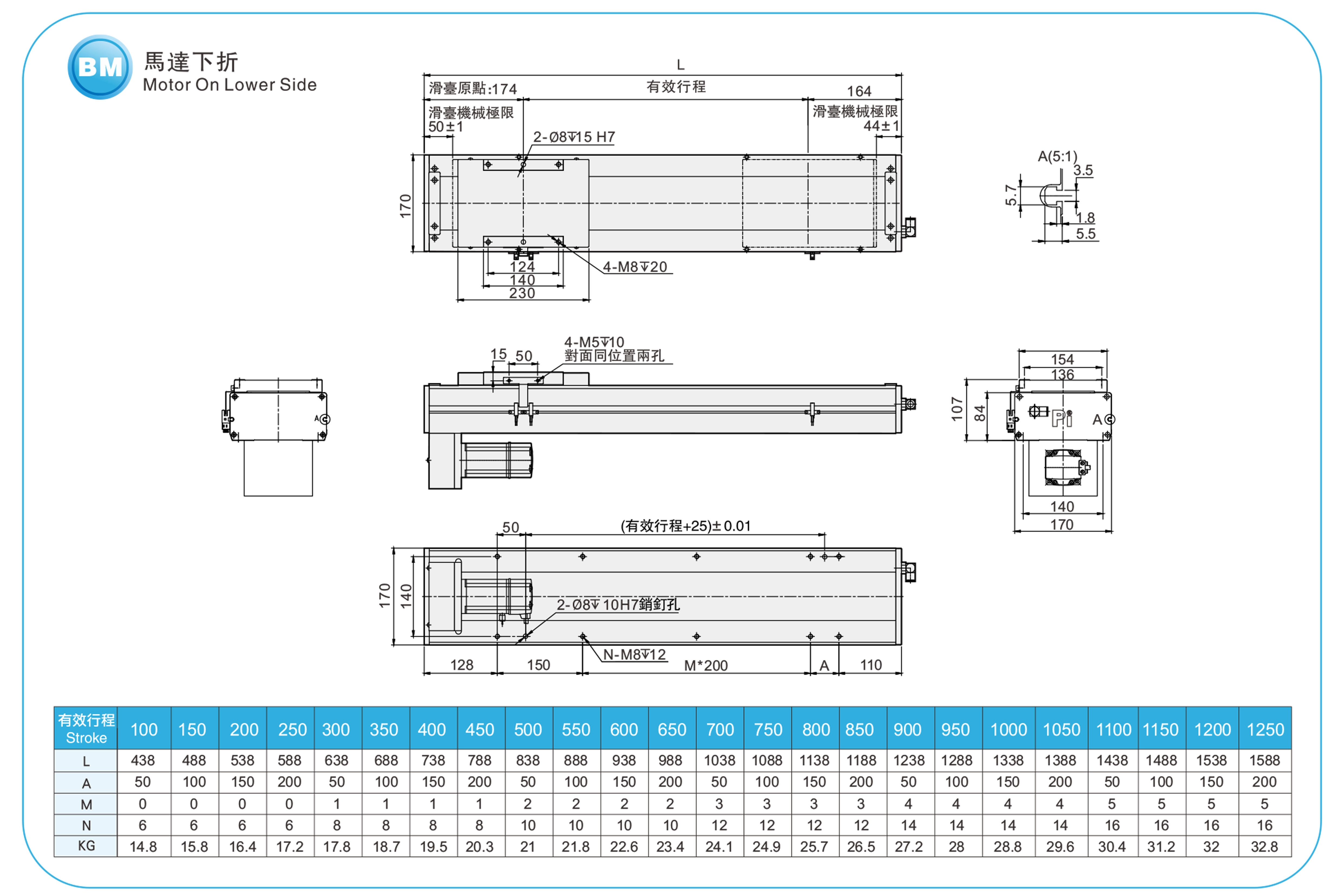 | Kullanım Alanı | Sürüş Modu | Model Özellikleri | Motor Çıkışı (w) | Genişlik (mm) | Tekrarlanabilirlik (mm) | Bilyalı Vida Özellikleri | Maksimum Yük Kapasitesi (kg) | Maksimum hız (mm/s) *1 | ||