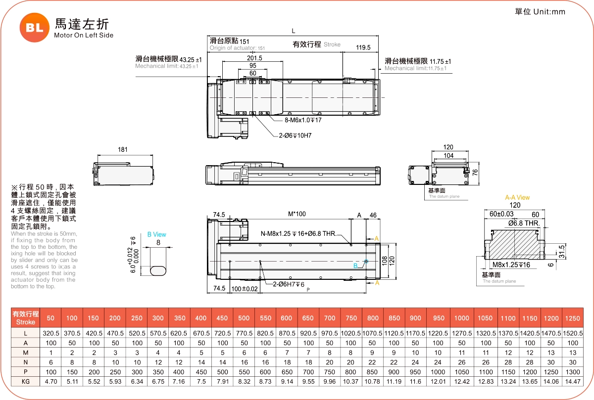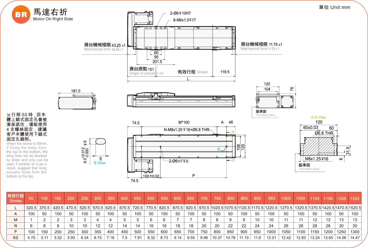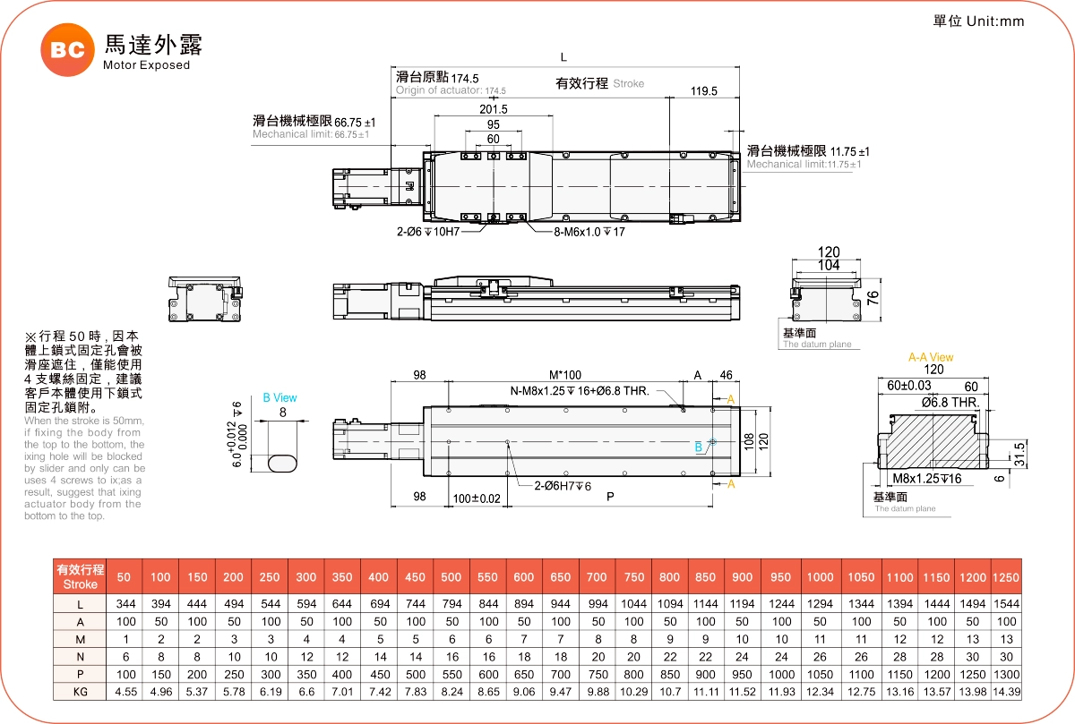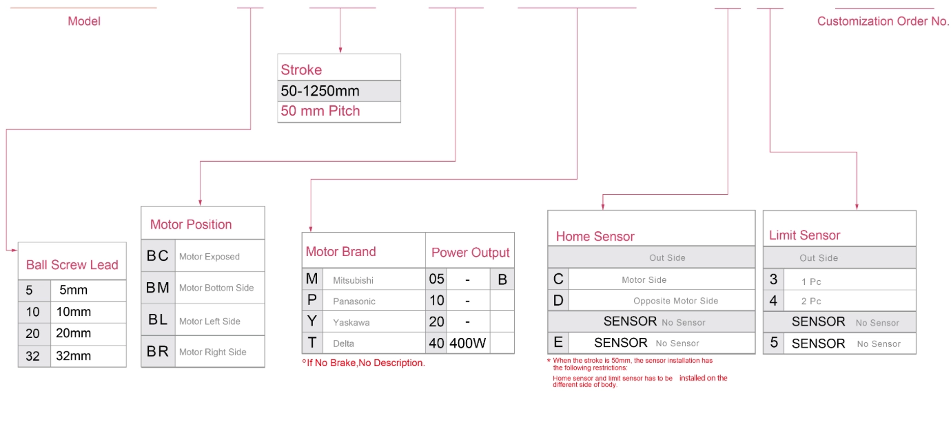 | Kullanım Alanı | Sürüş Modu | Model Özellikleri | Motor Çıkışı (w) | Genişlik (mm) | Tekrarlanabilirlik (mm) | Bilyalı Vida Özellikleri | Maksimum Yük Kapasitesi (kg) | Maksimum hız (mm/s) *1 | ||