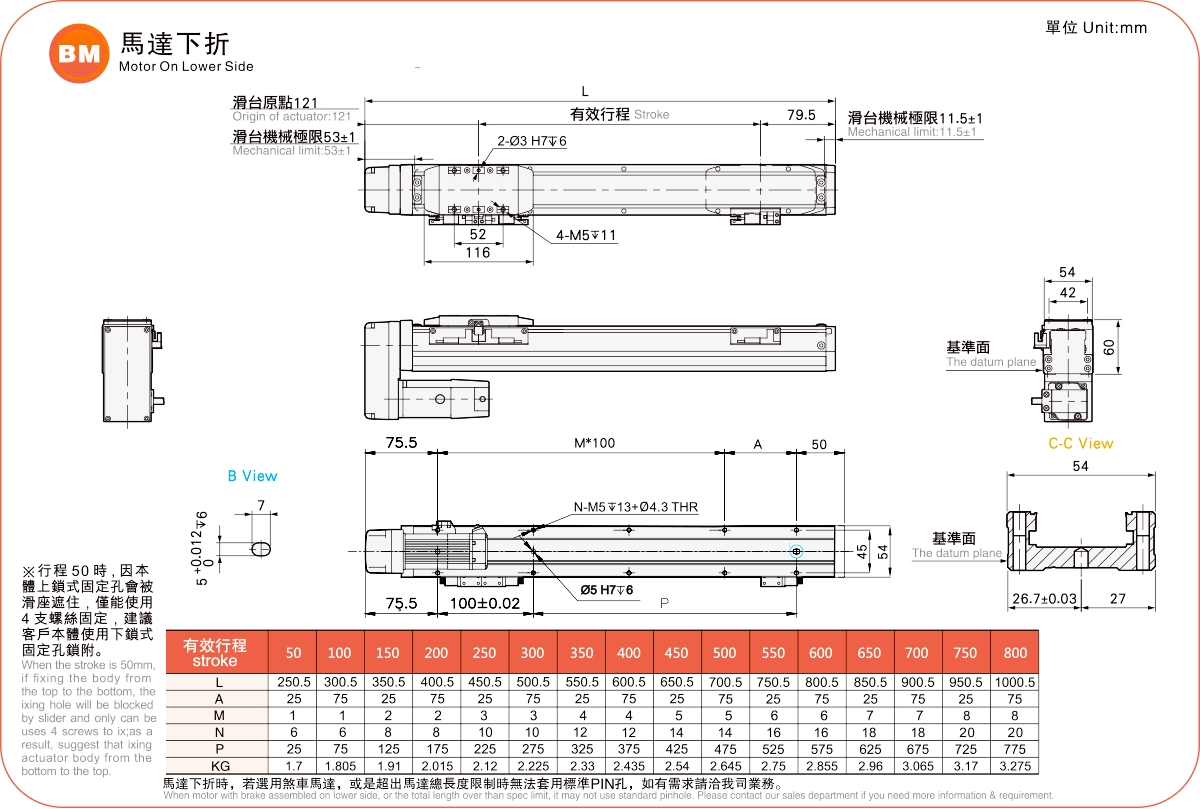 | Kullanım Alanı | Sürüş Modu | Model Özellikleri | Motor Çıkışı (w) | Genişlik (mm) | Tekrarlanabilirlik (mm) | Bilyalı Vida Özellikleri | Maksimum Yük Kapasitesi (kg) | Maksimum hız (mm/s) *1 | ||
