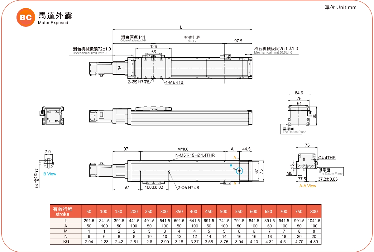 | Kullanım Alanı | Sürüş Modu | Model Özellikleri | Motor Çıkışı (w) | Genişlik (mm) | Tekrarlanabilirlik (mm) | Bilyalı Vida Özellikleri | Maksimum Yük Kapasitesi (kg) | Maksimum hız (mm/s) *1 | ||