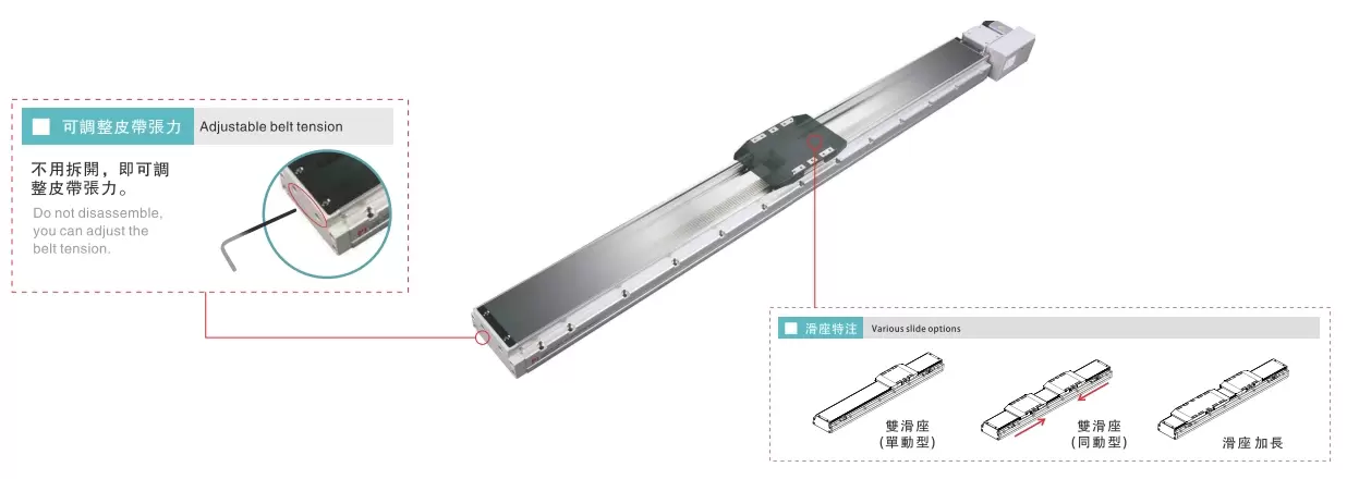 | Kullanım Alanı | Sürüş Modu | Model Özellikleri | İndirgeyici Mekanizma | Motor Çıkışı (w) | Genişlik (mm) | Tekrarlanabilirlik (mm) | Kayış özellikleri | Maksimum Yük Kapasitesi (kg) | Maksimum hız (mm/s) *1 | ||