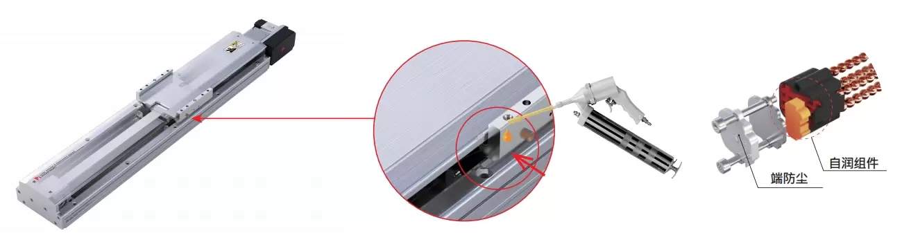 Çelik bant koruması sayesinde, yab cisimlerin doğrudan kayar tablaya düşmesi önlenir ve toz oluşumu azaltılır. Temiz oda ortamlarında kullanılabilir ve farklı üreticilerin motorları ve montaj yöntemleriyle donatılabilir.
