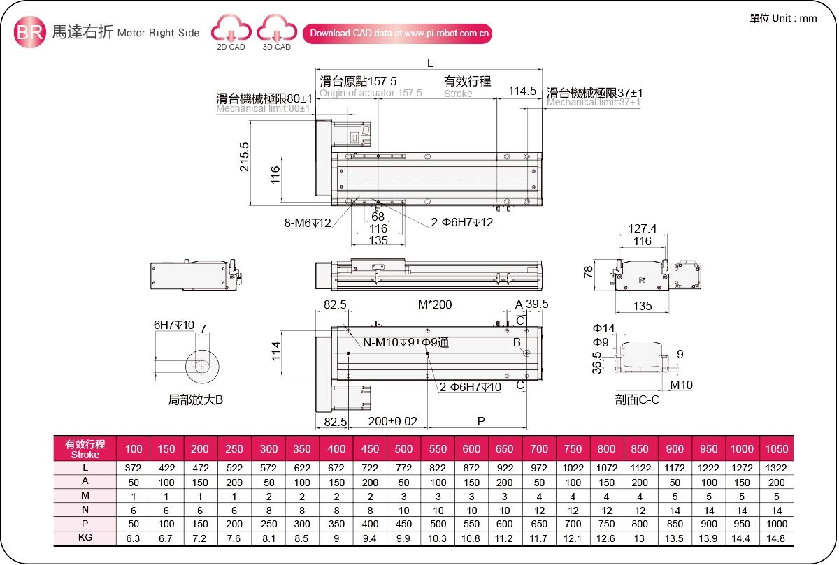 | Kullanım Alanı | Sürüş Modu | Model Özellikleri | Motor Çıkışı (w) | Genişlik (mm) | vücut yüksekliği (mm) | Tekrarlanabilirlik (mm) | Bilyalı Vida Özellikleri | Maksimum Yük Kapasitesi (kg) | Maksimum hız (mm/s) *1 | ||||||||||
