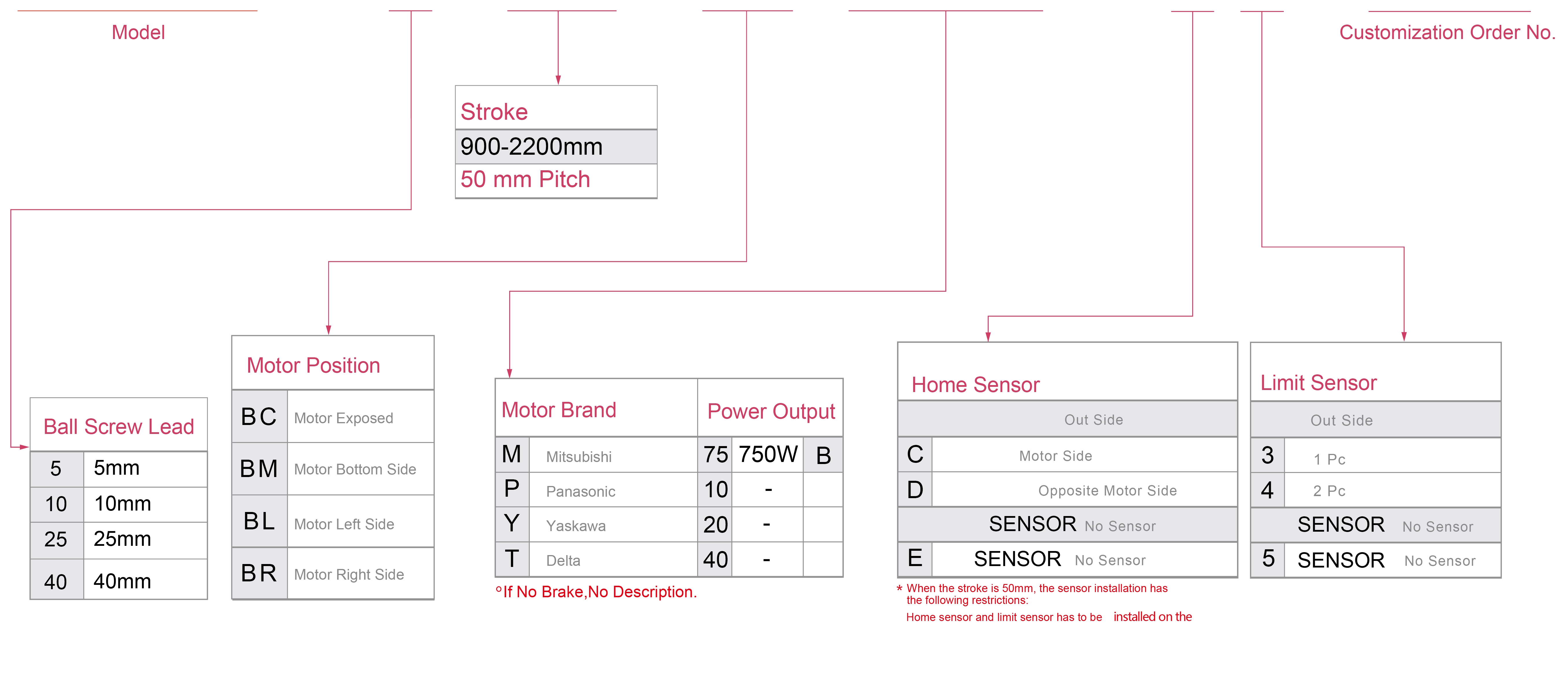 | Kullanım Alanı | Sürüş Modu | Model Özellikleri | Motor Çıkışı (w) | Genişlik (mm) | vücut yüksekliği (mm) | Tekrarlanabilirlik (mm) | Bilyalı Vida Özellikleri | Maksimum Yük Kapasitesi (kg) | Maksimum hız (mm/s) *1 | ||||||||||