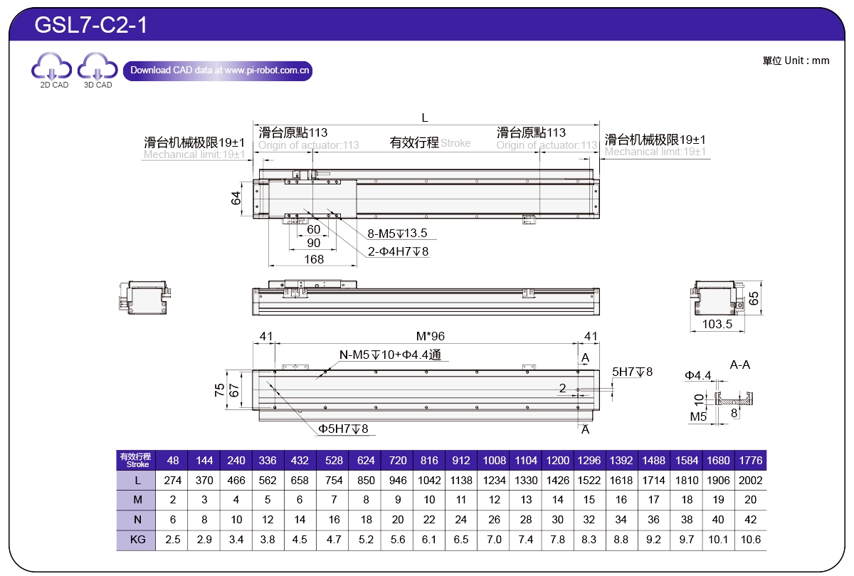 | Standart | Doğrusal Motorlu Robot | GSL7 | P27-C1 | 75 | 65 | ±0,003 | 26 | 57 | 3.3 | 6 | 2500 |