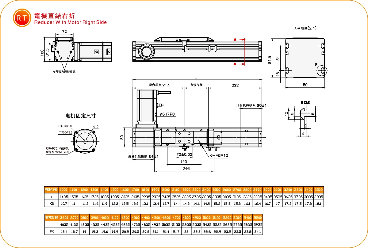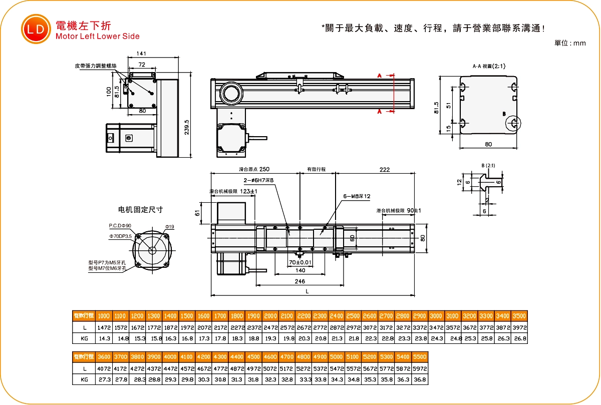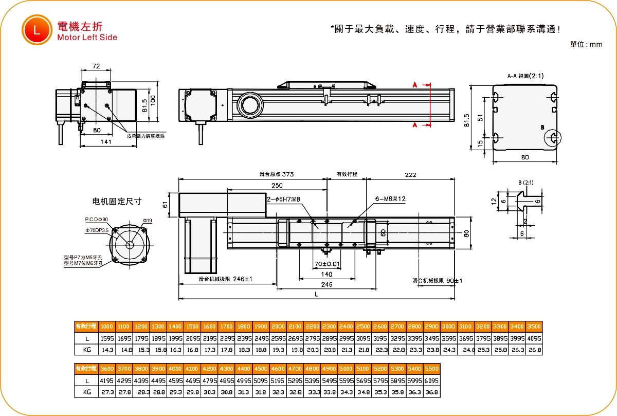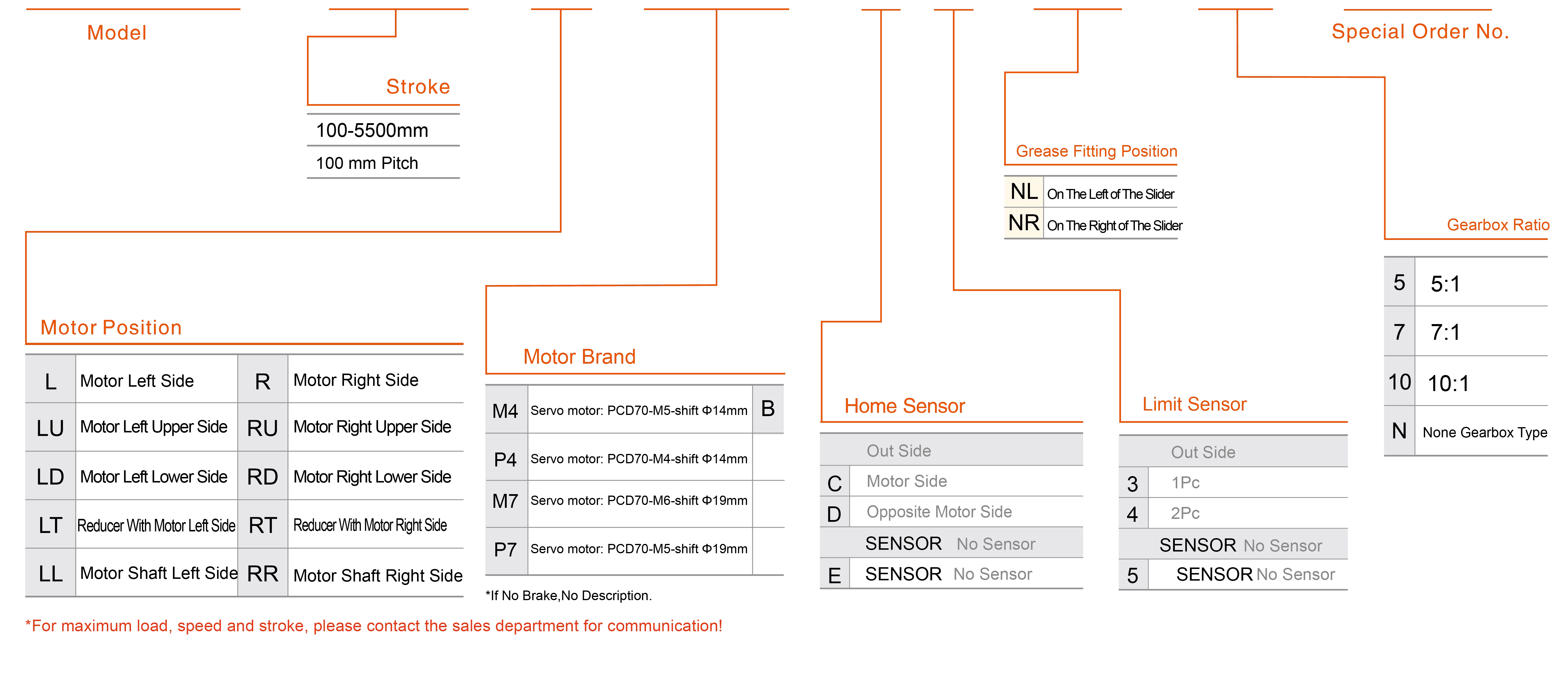 | Kullanım Alanı | Sürüş Modu | Model Özellikleri | İndirgeyici Mekanizma | Motor Çıkışı (w) | Genişlik (mm) | Tekrarlanabilirlik (mm) | Kayış özellikleri | Maksimum Yük Kapasitesi (kg) | Maksimum hız (mm/s) *1 | ||