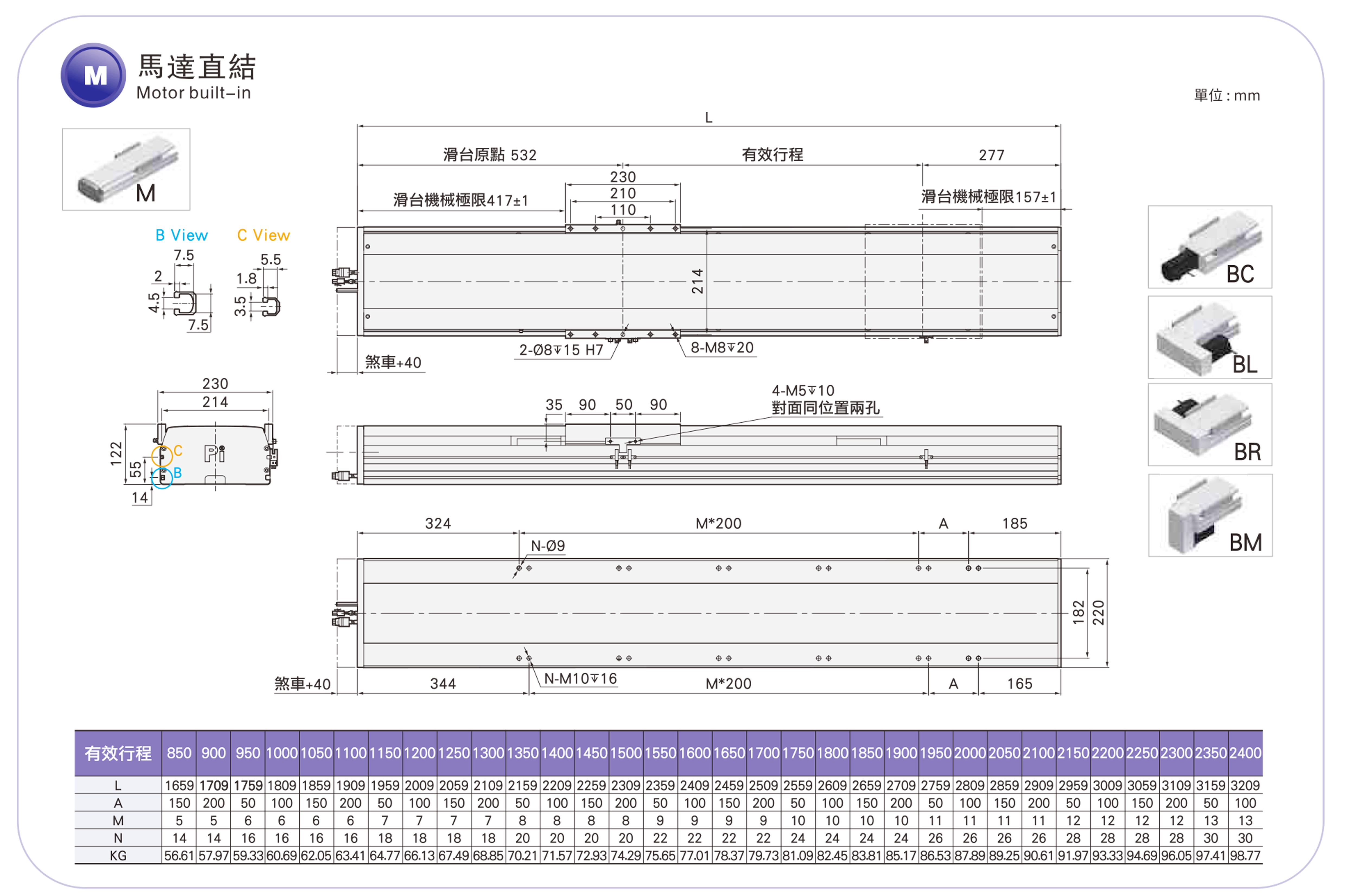 | Kullanım Alanı | Sürüş Modu | Model Özellikleri | Motor Çıkışı (w) | Genişlik (mm) | Tekrarlanabilirlik (mm) | Bilyalı Vida Özellikleri | Maksimum Yük Kapasitesi (kg) | Maksimum hız (mm/s) *1 | ||