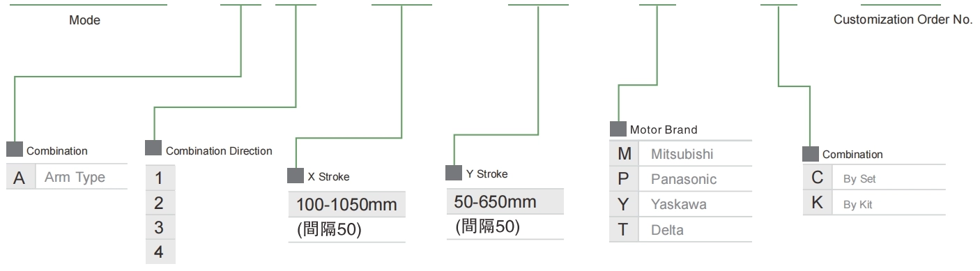 Kullanım AlanıSürüş ModuÖzelliklerKombinasyonEksen NumaralarıMaksimum hız (mm/s)Strok (mm)